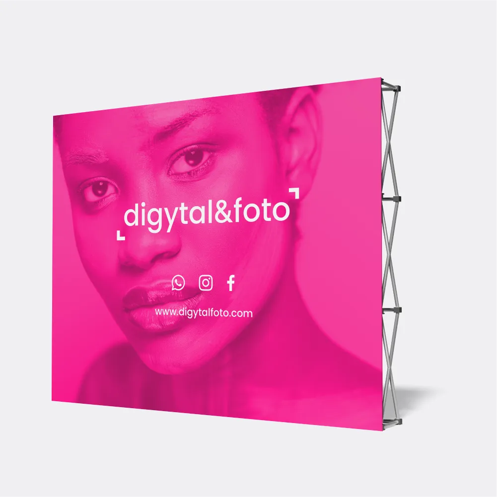El Photocall es una estructura portátil de aluminio diseñada para eventos, ferias, conferencias y presentaciones, donde es necesario exhibir gráficos de gran formato. Su estructura retráctil permite desplegar la estructura de forma sencilla y fijar la gráfica mediante velcro, pudiendo intercambiar la gráfica de forma sencilla y en poco segundos.