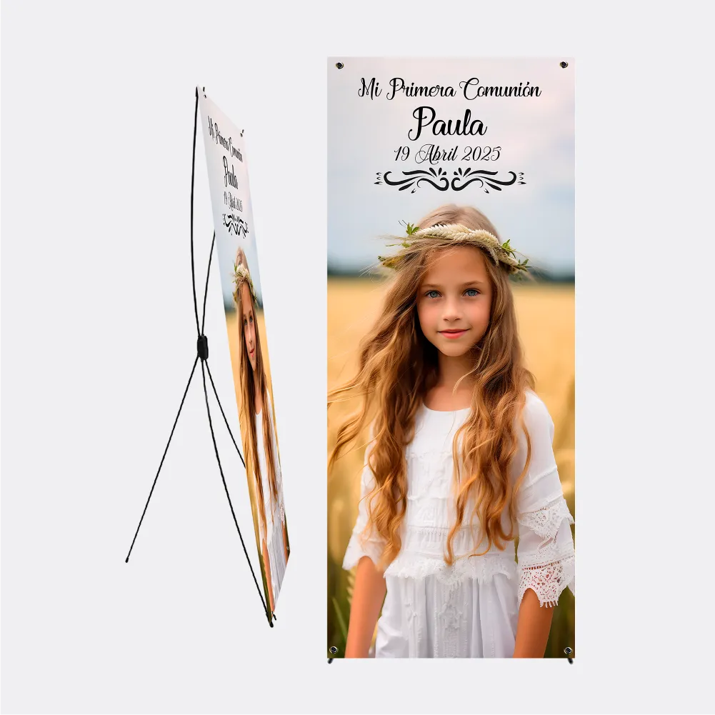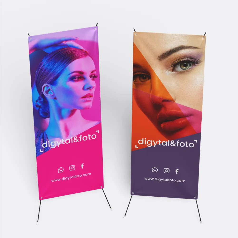El X-Banner es un soporte portátil para exhibición de gráficos impresos, ideal para eventos, ferias, conferencias y puntos de venta. Su estructura en forma de «X» proporciona estabilidad y permite sujetar una impresión en lona o polipropileno.